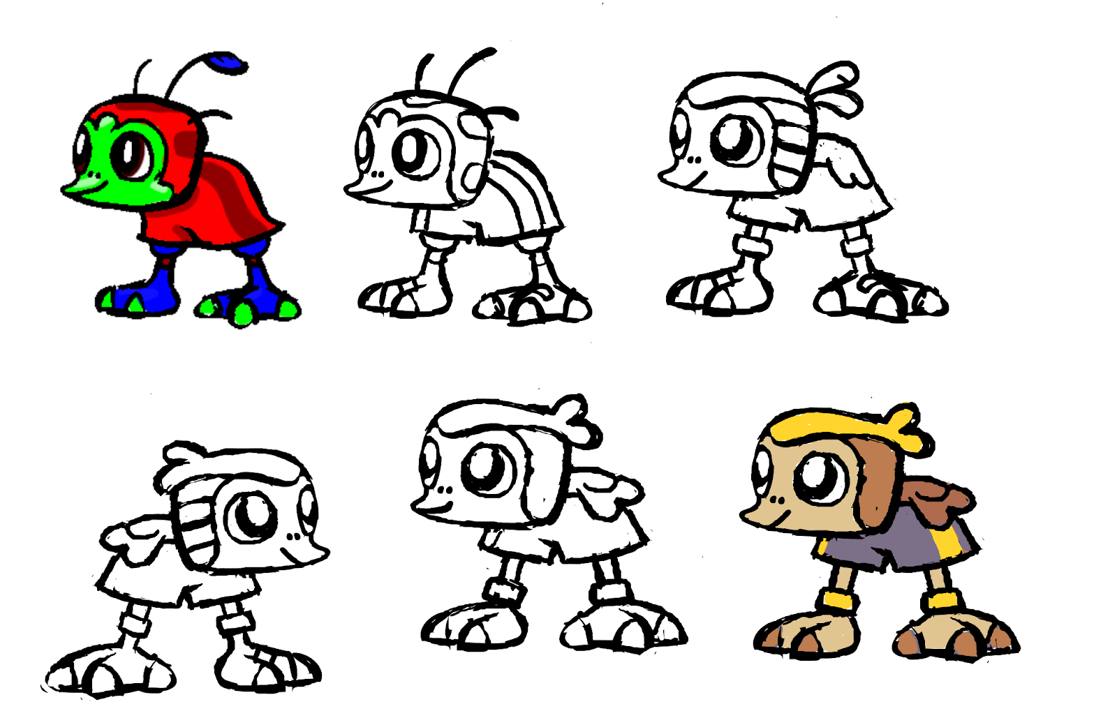 Greg: The game starts by having the player choose their first Beastie from a set of 3 - this is something Pokemon does too, and it’s frankly good game design that we couldn’t improve on. You want players to choose their own Beasties so that they feel a personal connection to them; and 3 is the perfect number of choices (just enough to have a “favorite”, but just few enough to not be paralyzing). So before even a single design was done, we knew we needed 3 “starter” Beasties at some point. Once I saw these sketches, they seemed like a natural choice as a “starter Beastie” since they perfectly encapsulate the “sports + animals” theme of the entire game - most designs get a lot more loose with that premise.