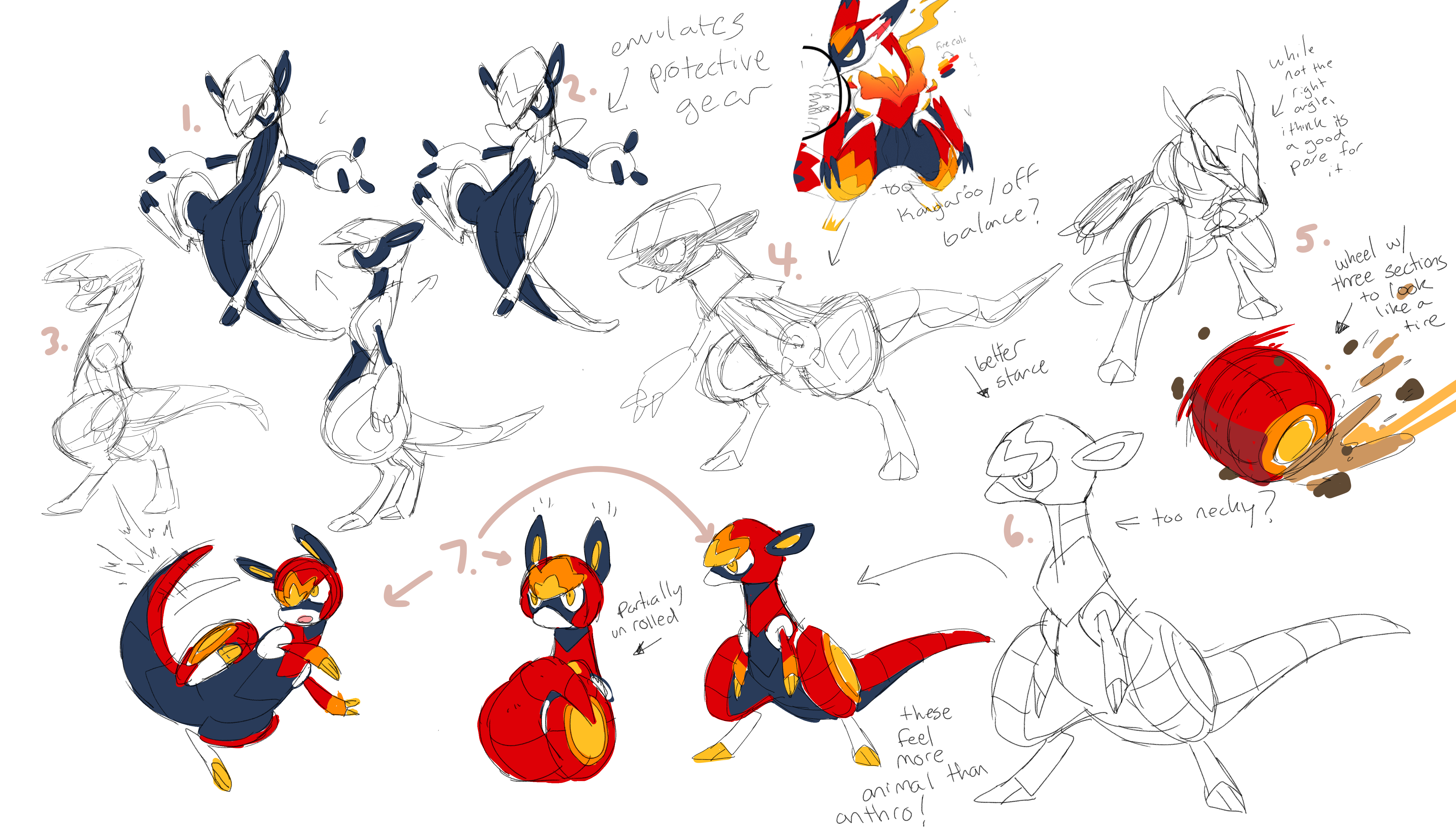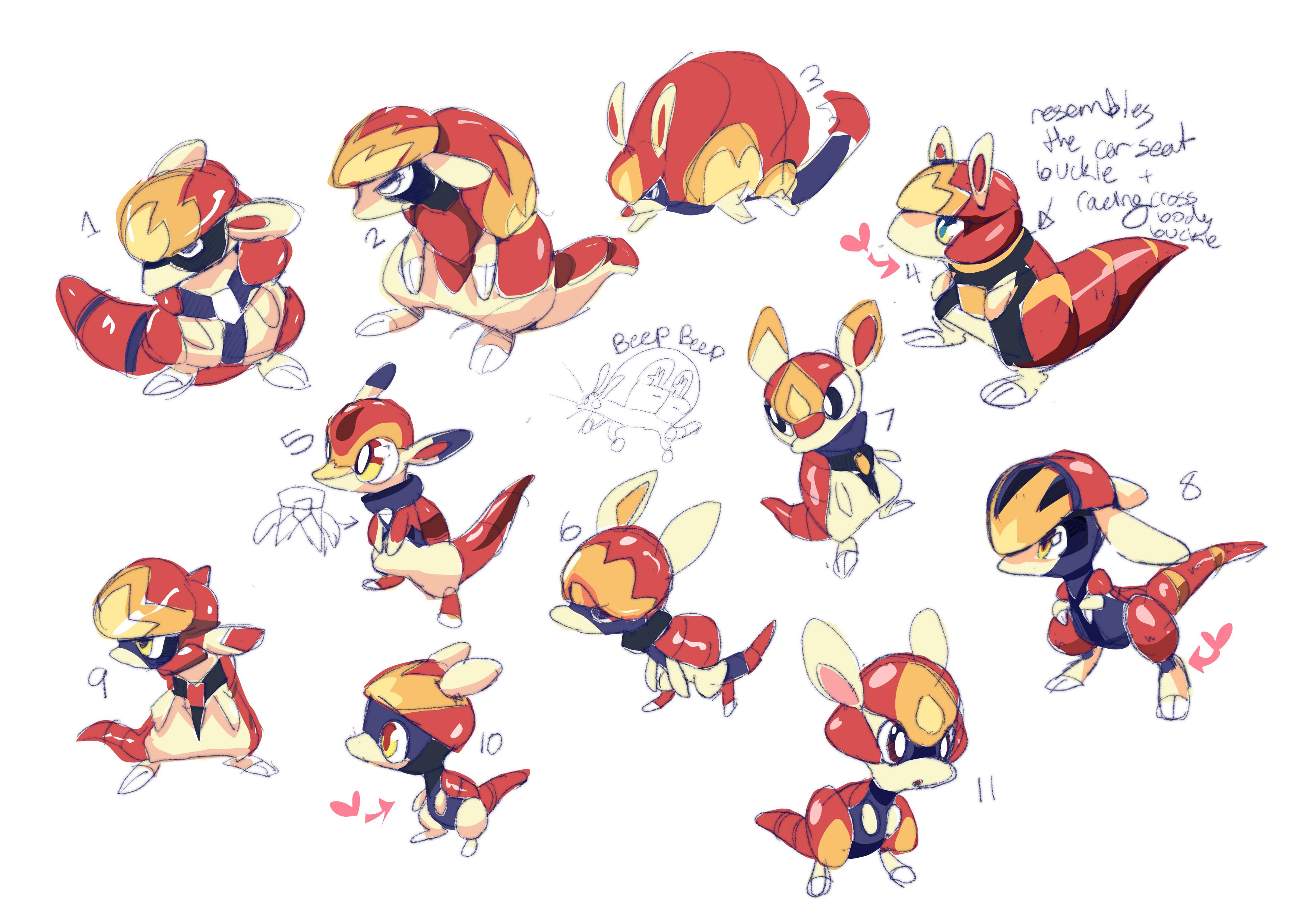 One of our core guiding principles on this project was to keep our animal inspirations forward, to make designs that felt naturalistic rather than overly anthropomorphized or fantastical. So following the initial exploration, Iris tried to hone in on a more “armadillo”-like silhouette, to good success! We were starting to see the design shift from something that was generically cool-looking into something that felt more like a Beastie.