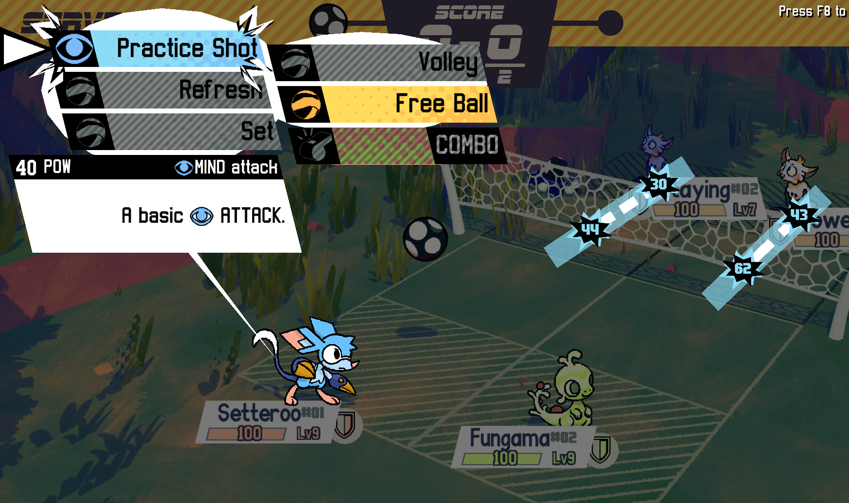 That quality continues to be valuable even as development has progressed. About a week before we first revealed our Steam demo, I made a very big change to the game systems, adding a new “Block” move that any Beastie could do at the net. Simply by adding the button to the player’s interface, the AI also had access to it, and even started using it in unexpectedly optimal ways that helped me quickly test and refine the idea before releasing it.