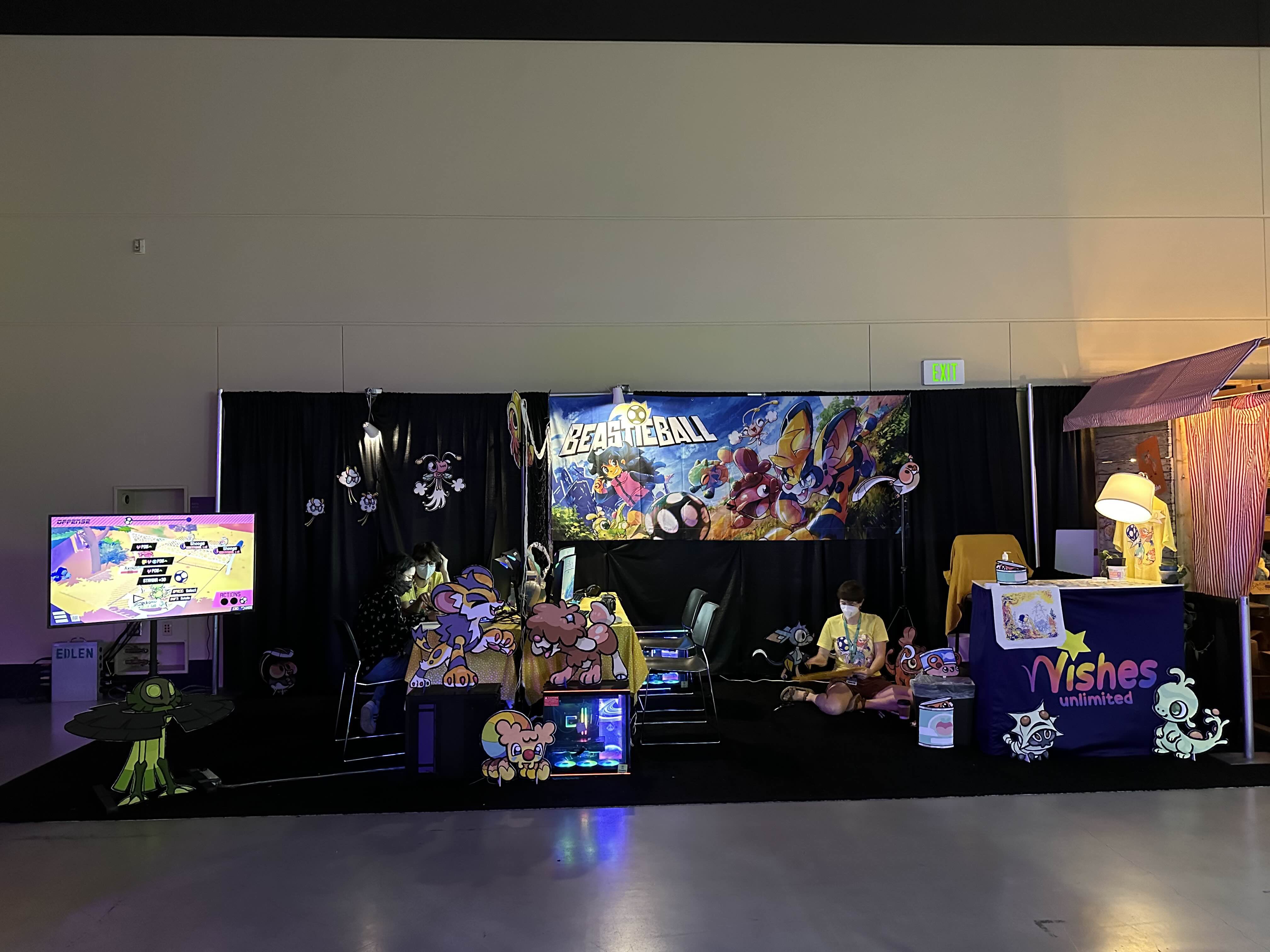 For this show demo, we added a temporary special feature called the Champ Challenge. Every demo station had a current champion named on the title screen. Instead of playing the usual demo, players could opt into challenging the current Champ; if they did so, they were assigned a random team of 4 Beasties and took on the previous Champ’s team in a bossfight-like encounter. And if they won, their team would take over the demo and their name would be added as the current Champ!