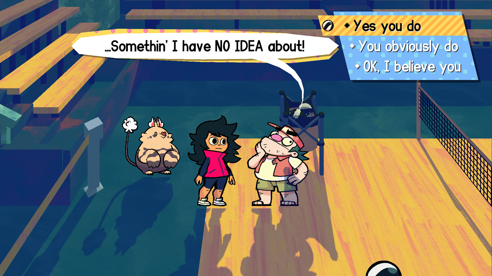 The stories in my games are almost always the focus of the project and something we put a lot of care into. I’ve tackled a lot of different game genres and story presentations. Notably, the second half of Chicory presents several major story threads that can each be experienced in any order. After the success of that experiment, I felt more confident stepping into Beastieball with the plan to have almost all of the game’s events be unordered. I’ve never really loved the storytelling in the open-world games that I’ve played, but I was excited to take the narrative design experience I have and apply it to that problem to see what I could do. But I didn’t anticipate all the ways that I’d be challenged by the process along the way!