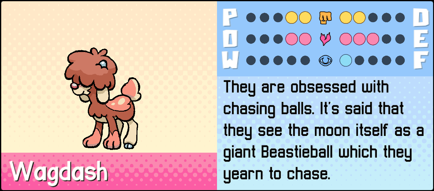 Wagdash, the sheep-dog Beastie! This playful pup is more ball-obsessed than most Beasties, and that’s saying a lot. They’ll chase the ball restlessly and never get tired!