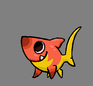 On top of everything else she needed to get done in time for release, Alexis was iterating on ideas to merge the spotted-ball theme of Pubber with our existing adult shark design. The key issues were; Pubber's design has a more solid/three dimensional feeling compared to the original sharks, Pubber's colours are completely different, and (maybe most importantly) there was absolutely no common theming or personality between the two. Pubber is a long, cute, floppy critter who curls into a ball, and the bigshark is a toothy guy who hits things really hard with their giant tail. We came up with some designs that kind of approached solving the first two - but the 3rd issue was still totally unaddressed. On top of that, we were struggling to find a design whose appeal surpassed the original bigshark sketch we already had waiting in the game. Everything that brought them closer to Pubber also took them further away from what worked in that design.